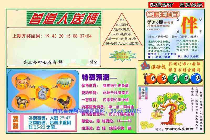 | 315期 | 牛马狗猪羊鼠猴 | 虎04错 |
